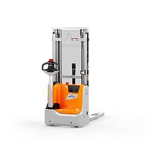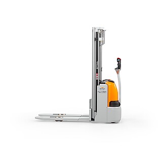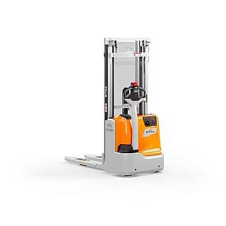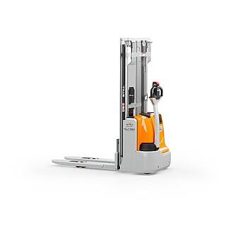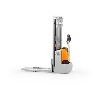 Benzersiz OptiSpeed dümene sahip EXV yüksek kaldırma kapasiteli forklift son derece etkileyicidir. Bu manuel olarak yönlendirilen depo yardımcısının hızı, operatör ile forklift arasındaki mesafeye göre otomatik olarak uyarlanır. Ergonomi açısından benzersiz bir dümene sahiptir, kontrol düğmelerinin konumları üzerinde çokça düşünülmüştür. Hangi ellerini kullandıkları ve ellerinin boyutları fark etmeksizin tüm operatörler tarafından tek elle kolayca kullanabilir. Ayrıca, dümen kafasındaki LED ekran, operatörün tüm forklift bilgilerini takip etmesine olanak tanır. Forkliftin yokuşlarda dengede kalma ve dümen kolu bırakıldığında otomatik olarak durma yeteneği de özellikle etkileyicidir. Zemine temas etmeden hemen önce indirme hızını yavaşça azaltan gelişmiş indirme sönümleme özelliği, depolama sırasında malları korur. EXV, malları her zamankinden daha sık yerleştirerek malların depodan daha kolay çıkarılmasını mümkün kılar. Kısıtlı alanlarda manuel bir forklift ile büyük miktarda malı, malların ön depolama alanında taşınmasından veya raflara yerleştirilmesinden bağımsız olarak, hızlı ve güvenli bir şekilde taşıma söz konusu olduğunda, yüksek rezidüel yük kapasitesi ve olağanüstü manevra kabiliyeti bu kompakt forklift rakipsiz kılar.