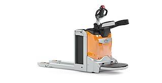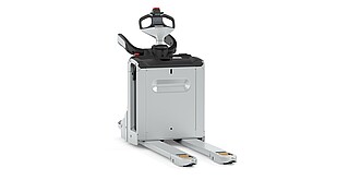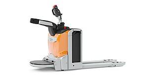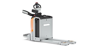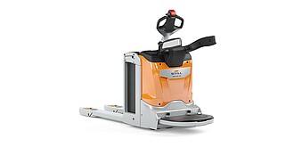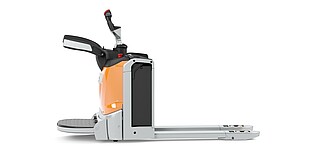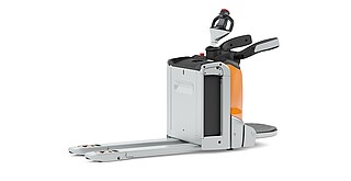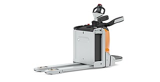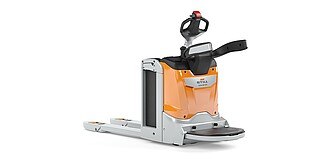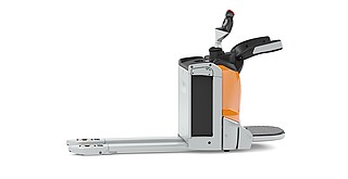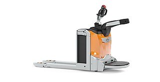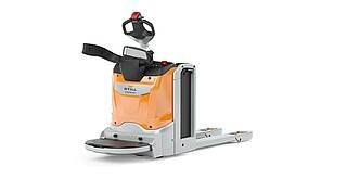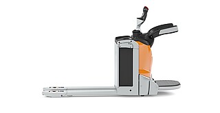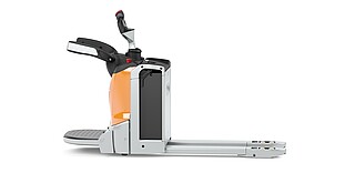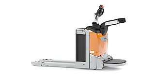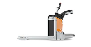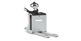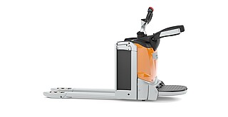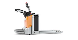 Manoeuvrability and intuitive operation taken to a new dimension – the EXH-SF 16C/20C low lift pallet truck with folding stand-on platform is the smart assistant for light to medium duty horizontal transport operations. With its impressively slim dimensions, the pallet truck is very easy to manoeuvre when loading and unloading HGVs and can be operated with precision thanks to the electric steering and the innovative STILL tiller. The innovative STILL LED or touch display integrated in the tiller head provides even more working ergonomics and an excellent overview of all relevant truck data.